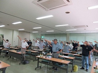 最後に、河瀬和典副会長より閉会の挨拶があり、米岡新一会長の音頭で団結ガンバローを三唱し、熊本県退職者連合第31回定期総会を終了しました。