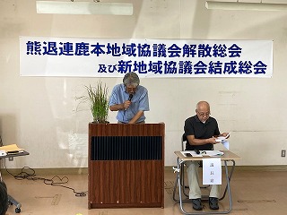 8月21日、山鹿勤労福祉会館で熊退連鹿本地域協議会の解散総会と熊退連肥後有明地域協議会の結成総会が開催された。