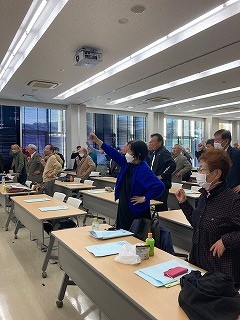 最後に佐藤和夫会長から衆議院熊本3区の「橋村りか」候補の必勝を込めて「団結ガンバロウ―」を三唱し、熊退連菊池阿蘇地協第17回定期総会を終了しました。